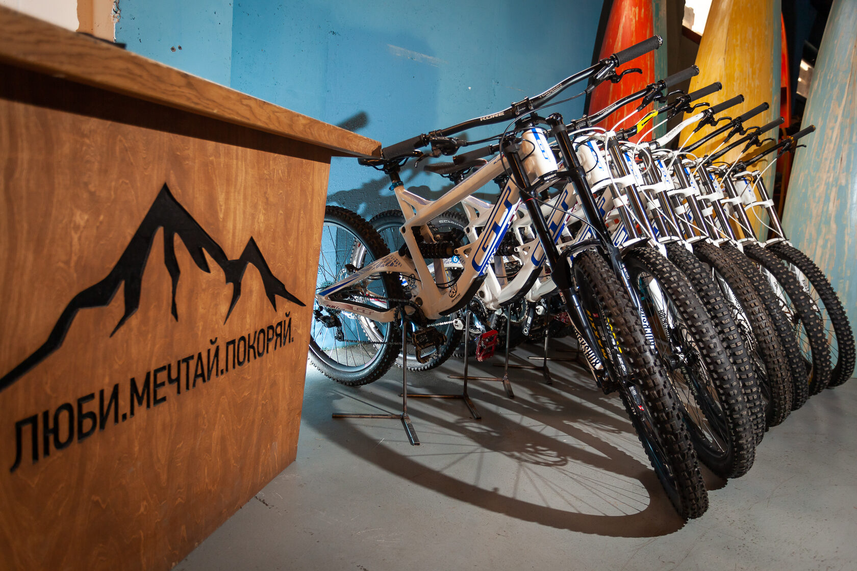В этом сезоне мы открыли прокат велосипедов и снаряжения, есть мастерская, хранение и небольшой магазин с расходниками. Работаем ежедневно с 9 до 19, располагаемся напротив курорта.